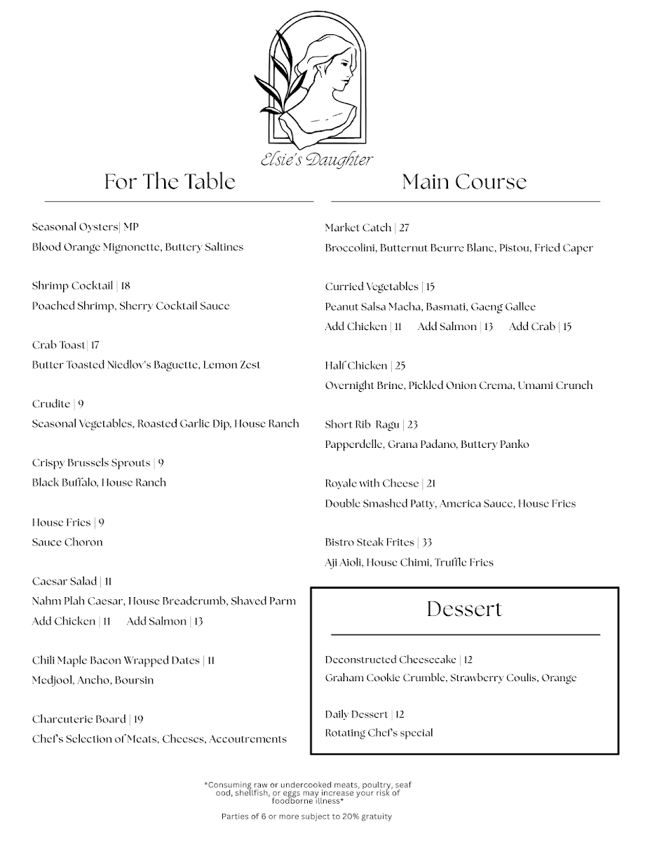 With rave reviews from patrons appreciating both the food and ambiance, Elsie's Daughter is a must-visit for anyone seeking extraordinary flavors in a relaxed setting.