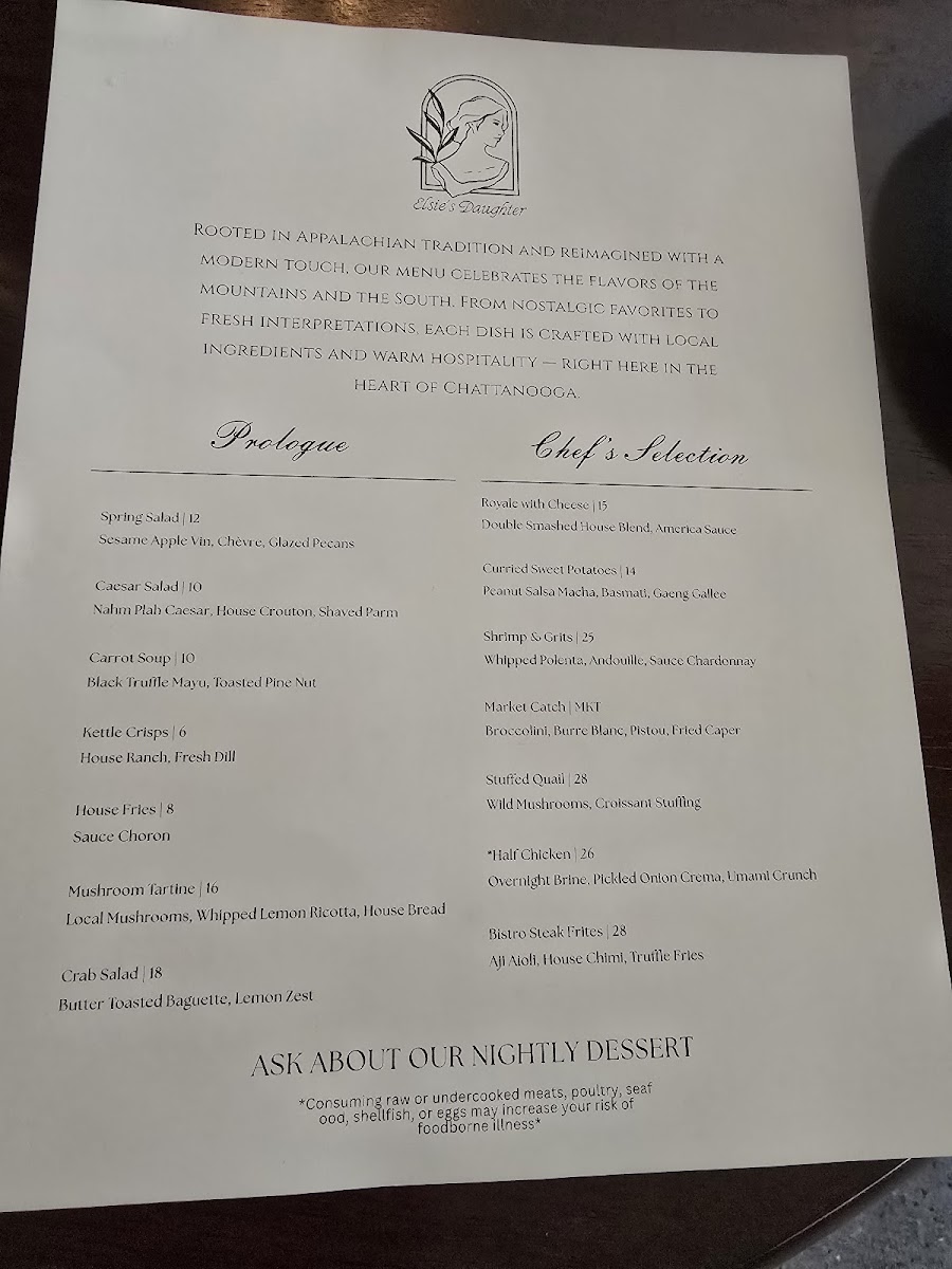 Introducing Elsie's Daughter, a charming culinary destination located in the heart of Chattanooga, TN. As you step into this hidden gem at 1404 Rossville Ave, you're greeted by a warm, inviting atmosphere and an incredibly friendly staff. The menu is a delightful fusion of flavors, featuring standout dishes like the Curried Vegetables and the ever-popular Royale with Cheese, each made with remarkable care and creativity.